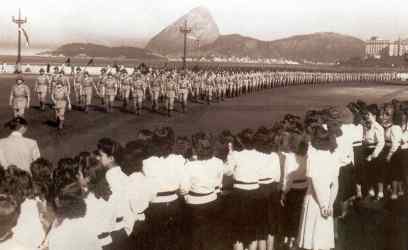 em formatura para desfile no Rio de Janeiro, antes de partirem para a