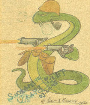 Walt Disney, atendendo gentilmente a um apelo de O GLOBO, e rendendo, assim uma homenagem a todos vocês, combatentes da FEB, interpretou especialmente para nós, na concepção magistral que a gravura reproduz, a já hoje histórica legenda com que os soldados do Brasil chegaram à frente italiana:" A cobra está fumando". Nesta última criação do artista de fama universal, temos uma Cobra realmente belicosa, em atitude correspondente ao sentido da frase. O seu não é o cachimbo da paz, dado a fumar ao estrangeiro na taba de Arakem. A cobra fuma de raiva, o bote armado, despejando contra o nazista toda a carga de peçonha dos seus dois Colts, que disparam simultaneamente. E, na expressão decidida de mais essa personagem do elenco de Walt Disney, o mesmo sabor do grito de guerra do "pracinha": "A cobra está fumando!" O humor intraduzível dessa epigrama que vem do mais profundo da alma do povo e ganha foros de lema para o combate. Um grito de guerra sem jactância, a modéstia irônica dos nossos bravos rapazes camuflando o seu próprio denodo. Com o dito espirituoso eles disfarçam o sentido heróico dos feitos que as crônicas registram e as ordens do dia do comando superior consagram em repetidos louvores. Walt Disney, que em sua passagem rápida pelo Rio de Janeiro colheu o estupendo flagrante de "Zé Carioca", lavra novo tento com essa perfeita representação gráfica da "verve" do Expedicionário, no símbolo de sua Cobra do desacato. |