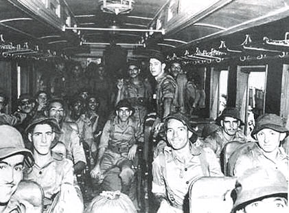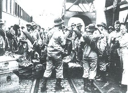 soldados com todos os seus pertences, inclusive instrumentos musicais,