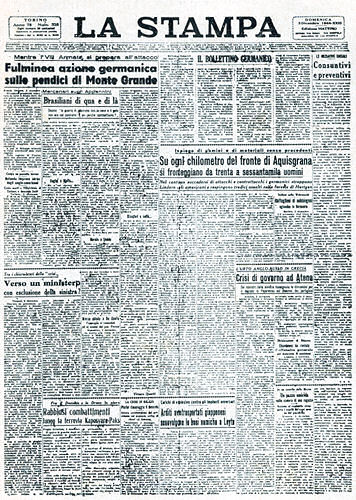 jornal fascista "La Stampa", em sua edição dominical, de 3 de setembro de