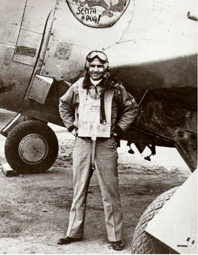 Não podemos deixar de dizer algumas palavras sobre os destemidos representantes da Força Aérea Brasileira que lutaram na Itália, alguns integrados na 1ª DIE, outros na poderosa aviação aliada, de que souberam ser dignos membros. A FAB. enviou ao Teatro de Operações na Itália, uma Esquadrilha de Ligação e Observação, que fazia parte da Artilharia Divisionária e o 1º Grupo de Caça, que era independente da FEB e pertencia ao "350th Fighter Group" (350º Grupo de Caça), grande unidade do "22nd Tactical Air Command" (22º Comando Tático Aéreo), sob as ordens do General Brigadeiro B .W. Chidlaw. A Esquadrilha de Ligação e Observação, ou simplesmente a ELO, era uma pequena unidade mista, composta de um Comandante, que foi o Cap. Av. João Afonso Fabrício Belloc, doze oficiais de Aviação, dez oficiais de Artilharia, dez mecânicos e vinte e duas praças. Os doze oficiais de Aviação foram o 1º Ten. João Torres Leite Soares, 2º Ten. João Ferreira da Cunha Filho, Aspirantes Darcy Pinto da Rocha Campos, Carlos Alberto Klotz, Eduardo Maia, Roberto Paulo Paranhos Taborda, Arnaldo Vissoto, Chafik Bittar, Cornélio Lopes Cançado, Joel Clapp, Francis Forsyth Flemming e Luís José Santos. A princípio a Esquadrilha se localizara em Pisa, mudando-se depois para Pistoia e finalmente para Soviano, próximo ao QG da Artilharia, onde ficou durante a maior parte da guerra. Utilizaram os pequenos aviões conhecidos vulgarmente pelo onomatopaico de "Teco-teco", ou sejam os "Pippers", L 5, que levavam o piloto e o artilheiro-observador. O Teco-teco é um frágil avião de turismo, improvisado em avião de guerra, porém inteiramente desarmado. Voa numa velocidade de 130 a 140 quilômetros por hora, com autonomia de três horas de vôo. Nenhum avião foi abatido, mas eram muito visados pelas armas anti-aéreas e alguns foram atingidos, com pequenas avarias. Quando chegavam perto das posições não eram molestados, pois o inimigo tinha medo de ser localizado. Eles sabiam que o frágil aviãozinho não possuía metralhadoras nem despejava bombas, mas estava em ligação telefônica com o QG e Grupos de Artilharia, para onde contava tudo o que via. A fumaça ou o clarão de um disparo denunciador era localizado com precisão, imediatamente relatado pelo artilheiro do ar ao artilheiro de terra e dentro de alguns minutos choviam as bombas naquela posição. E assim muitas vezes o Teco-teco passava sobre metralhadoras e canhões alemães, que ficavam quietos, encolhidos em suas "camouflagens", esperando que o "abelhudo" se distanciasse. Quando virava as costas, na certa era alvejado. Mas bastava uma rápida manobra do piloto, voltando-se para ver donde vinham os tiros e tudo silenciava. Ninguém desejava ser marcado pelos "olhos da Artilharia". Alguns pilotos da ELO , com alma de bombardeiros, não se conformavam de voar sobre as linhas inimigas, sem armas. De vez em quando levavam granadas de mão e até simples pedras, para mexerem com os alemães. A base de maior atividade da ELO foi durante o inverno, quando o Teco-teco era o principal e, às vezes, único meio de observação do inimigo, dadas as condições de clima e terreno. Houve ocasiões em que se mantinha constantemente um avião no ar, durante todo o dia, fazendo patrulha aérea, regulando os tiros de canhão, observando os movimentos inimigos. Voavam com qualquer tempo, com a neve, com chuva, naqueles desfiladeiros onde havia perigosas correntes de ventos, com densidades diferentes, que brincavam com o Teco-teco. Mas o pessoal não se incomodava e cumpria todas as missões que lhe eram designadas. Depois da guerra os aviadores da ELO tiveram uma grande vantagem com seus pequenos aviões, que passaram a exercer a função para a qual foram criados - o turismo, pousando aqui e ali, vendo tudo o que havia de interessante na bela Itália. O 1º Grupo de Caça foi criado em dezembro de 1943 e dele faziam parte 75 oficiais, seis enfermeiras e 376 praças, num total de 457 pessoas, sob o comando do Ten. Cel. Nero Moura. O núcleo principal de oficiais seguiu para os Estados Unidos em janeiro de 1944, onde durante cerca de dez meses de treinamento na Flórida (Gainsville e Orlando), no Panamá (Base de Aquadulce) e em Suffolk Field, próximo de New York, nossos pilotos receberam completa instrução nos aparelhos P-40 e P-47, transformando-se em perfeitos pilotos de caça. Dos Estados Unidos o Grupo seguiu diretamente para a Itália, no navio francês "Colombie", arrendado para transporte de tropas americanas. Desembarcou em Livorno a 6 de outubro de 1944, instalando-se em um campo vizinho de Tarquínia, onde hastearam a Bandeira Brasileira, no dia 14 de outubro. Foi ai que surgiu o símbolo da FAB na Itália, o famoso avestruz, com seu grito de guerra: "Senta a pua!" Após quase dois meses de permanência em Tarquínia, os aviadores se transferiram para a cidade de Pisa, em cujo aeroporto instalaram sua base, que aí permaneceu até o final da campanha. O "Albergo Nettuno", à margem do Rio Arno, era o melhor hotel de Pisa e nele passaram a morar os oficiais, sendo que as praças fizeram seu quartel em uma casa na margem oposta do rio. As seções administrativas funcionavam no quartel das praças e as técnicas no aeródromo. A par das atividades guerreiras, nosso pessoal da Aviação tinha seus divertimentos em Pisa, chegando a organizar o "Clube Copacabana", que se tornou famoso por suas festas, bastante freqüentadas pela sociedade pisana. A base de operações do 1º Grupo de Caça distava apenas vinte minutos de vôo das posições alemãs, o que facilitava o ataque aéreo. Como os alemães não dispunham pràticamente de aviação na Itália, os "caças" não tiveram oportunidade de exercer sua missão típica, sendo empregados como " caça-bombardeiros", lançando bombas de 500 libras, em bombardeio picado, e metralhando os objetivos em vôo rasante, até esgotar a munição de suas oito metralhadoras. Estradas de ferro,