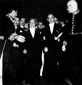 de Café Filho. Presentes o Cardeal Dom Jayme de Barros Câmara (à esquerda) e o