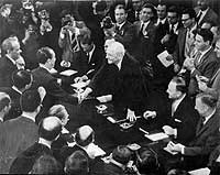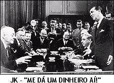 O presidente levantava-se da cadeira com a mão espalmada para cima, na horizontal, enquanto o secretário o esperava, de pé, braço semi-estendido, só que com a palma da mão para baixo. Não se sabe como, mas o Jornal do Brasil conseguiu a foto e a estampou em sua primeira página. Reza a lenda que foi José Ramos Tinhorão, o furibundo crítico da música popular brasileira, quem fez o título que acompanhava a foto. Nessa época, "Me Dá um Dinheiro Aí" estava no auge de seu sucesso. Foi o bastante para que Tinhorão colocasse o texto "Me dá um dinheiro aí" para ilustrar a foto. Também reza a lenda que Juscelino teria ficado tão irritado com a foto e o pequeno texto que teria deixado de assinar uma das concessões de canais de televisão do Rio de Janeiro que estavam sobre sua mesa – a do Canal 2 – para o Jornal do Brasil, ao mesmo tempo em que concedia outra, o Canal 4 (então praticamente concedida à Rádio Nacional do Rio de Janeiro, em uma operação que até hoje causa celeuma), às Organizações Globo. Obs. Perdemos a referência de onde este texto foi retirado. Se alguém souber sua procedência por favor nos comunique, para que possamos fazer o devido registro. |