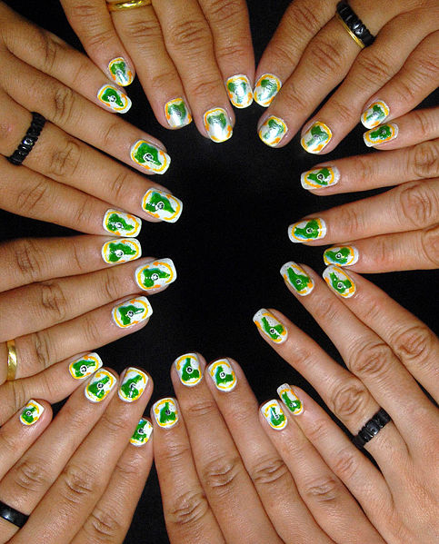 rondonistas exibem unhas pintadas com o símbolo do Projeto