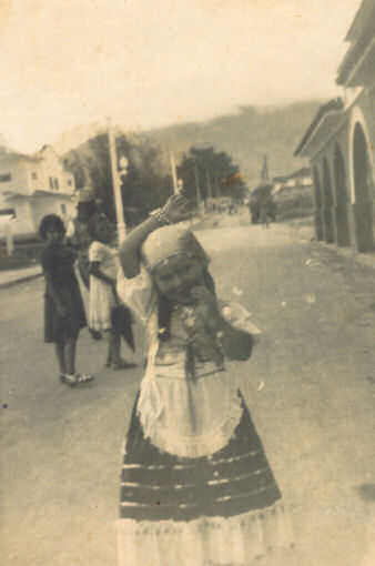 de 1953 - a pequena cigana mostra o prêmio recebido no concurso de fantasias infantis