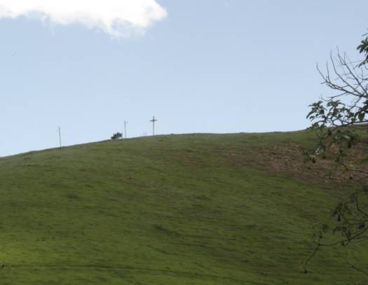 Nas missões católicas do ano de 1900, Piquete recebeu Frei Silvério, barbudo capuchinho da ordem franciscana. No primeiro dia, ele, da porta de nossa velha matriz, namorou o morro em frente para ser a penha de um cruzeiro. Desse namoro aos fatos não levou muito tempo, pois dentro de cinco dias lá estava, ereta, a dominar o pequeno povoado, uma cruz de madeira medindo mais ou menos oito metros de altura. O lenho desse cruzeiro era o de uma caviúna derrubada e lavrado no próprio morro pelo afamado madeireiro José Serrador. No sermão de cerimônia da ereção da cruz, Frei Silvério, parecendo adivinhar o futuro, falou simbolicamente sobre uma serpente que seria criada no município e que viria trucidar muitas vidas inocentes. Falou ainda que a cidade só não seria destruída pela tal serpente porque aquele cruzeiro, erguido em lembrança e honra de Cristo, evitaria tal catástrofe. De fato, três anos após foi iniciada a construção de nossa fábrica de explosivos, que tem cobrado a vida de muitos de nossos irmãos em troca do bastante que tem feito pelo nosso progresso. (Estas informações foram colhidas do Sr. Herculano Gonçalves, em 1974). Em três de maio de 1930, uma comissão composta pelos Srs. Auzelino de Castro, Odilon Soares da Costa, Benedito Pereira, Norival Crispim de Castro e Benedito José de Oliveira, depois de uma campanha popular que congregou toda a cidade, fez inaugurar, lá em cima uma capela de tijolos, medindo 4x6 metros, em terreno doado pela senhora Mariana Domiciana Relvas, cuja escritura de doação é datada de 2 de maio daquele ano e arquivada na Cúria Diocesana de Lorena. O nosso Museu Municipal possui uma fotocópia de tal escritura. No final da década de 40 o nosso vigário, Padre Juca, tendo em vista os abusos cometidos por pessoas mal educadas, viu-se obrigado a mandar demolir a dita Capela. Em 1958 uma outra comissão, encabeçada pelo Sr. Joaquim Augusto, em virtude do mau estado do cruzeiro de madeira, fez construir o atual cruzeiro de cimento, cujo projeto e cálculo da ferragem foram feitos pelo autor destas linhas. Foi uma luta a sua ereção, chegando mesmo ao ponto de uma pessoa de destaque na cidade ter dito, ao ver a cruz ainda na forma, no chão: Fizeram um belo cruzeiro, mas não vão conseguir erguê-lo...